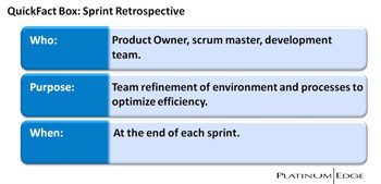 Together with the sprint review, the sprint retrospective represents the core of this feedback loop in scrum. The retrospective, in particular, focuses on addressing process and team improvements – the how-we-work-together.