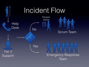 緊急停止が発生した場合、組織は前述の緊急対応構造(Tier 1からTier 2へ) を使いました。 時にはスクラムチームのメンバーも協力しました。 インシデント後のレビュープロセスには、スクラムチームメンバーが将来的に呼び出されるのを防ぐために、下位層が必要とする知識の収集も含まれていました。