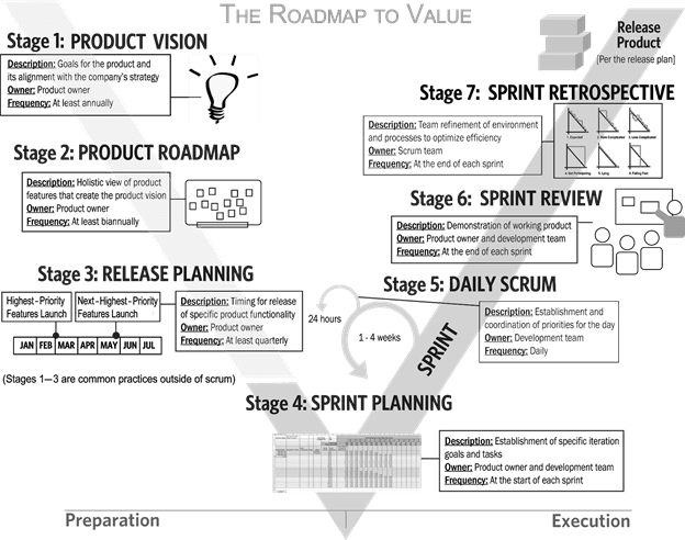 製品のビジョンとロードマップが整っていると、リリースとスプリントを計画し、目標を達成するための目標やストーリーを確立するための境界が明確になります。 製品ビジョン、各エピックや機能、各目標、各ユーザーストーリー、そして各タスクでさえも、望ましいアウトカムにまでさかることができ、それを支えます。